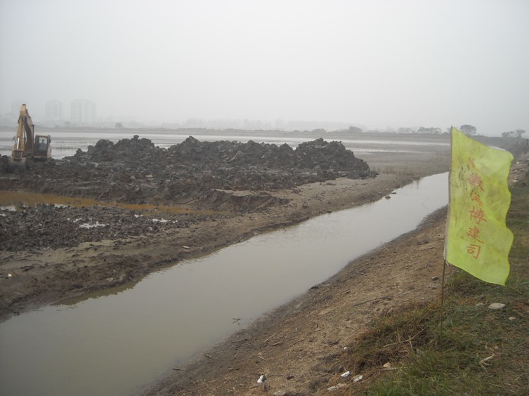 我公司承建的池州市重點市政工程——主城區水系貫通工程,已于10月18日正式開工。內容包括:疏浚河道4.54公里,(河道底寬20米,挖深3米)、生態護坡(三維土工網草皮護坡)、生態濕地、親水平臺(護砌高度達7.1~9.1米的硬護岸)、柳桉木的棧橋、棧道等。