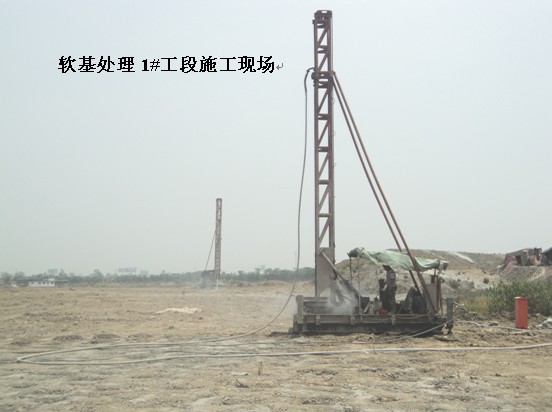 在軟基處理工段,就有四臺大功率打樁機械在同時施工。在施工電源無法保證多臺機械同時施工的困難局面下,新增了兩臺150KW大功率發電機進行發電,做到24小時歇人不停機連續施工,大大提高了施工進度,可以縮短近兩倍工期。