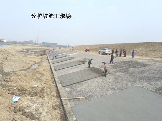 在生態護坡施工工段,也利用數個專業施工隊同時施工,流水作業。充分挖掘節拍間歇時間,提高施工速度。同時根據生態砼護坡的特點,先期就做好了生態護坡試驗,大大提高了生態護坡的成活率。