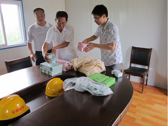 進(jìn)入盛夏,為切實(shí)保障一線施工人員的身體健康,預(yù)防高溫中暑,公司委派分管部門(mén)到各項(xiàng)目部送防暑降溫物品,切實(shí)關(guān)心在高溫條件下堅(jiān)持施工的一線施工人員。公司要求項(xiàng)目部加強(qiáng)對(duì)防暑降溫知識(shí)的宣傳,落實(shí)每一位工人的防暑降溫物品,并要求現(xiàn)場(chǎng)施工人員隨身攜帶防暑降溫物品,如人丹、清涼油、風(fēng)油精、十滴水等。