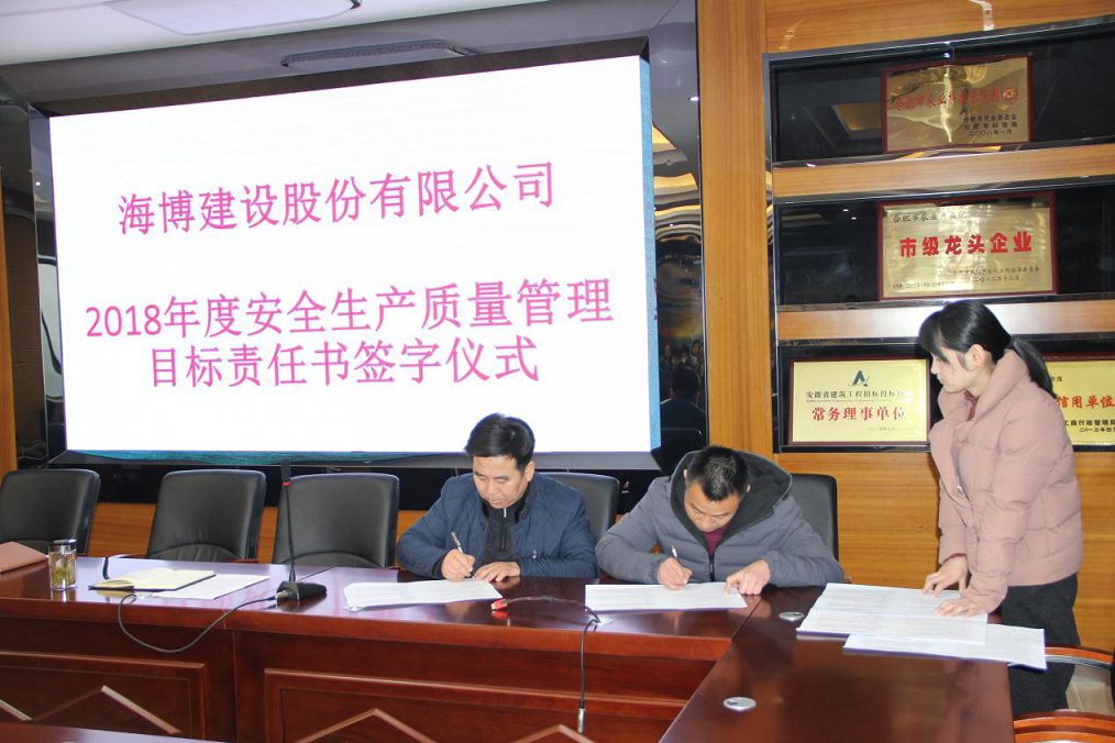 會(huì)議還組織了公司法定代表人曹成穩(wěn)經(jīng)理與在建項(xiàng)目的項(xiàng)目經(jīng)理共同簽訂了“2018年度安全生產(chǎn)質(zhì)量管理目標(biāo)責(zé)任書”,并要求各項(xiàng)目部認(rèn)真貫徹《落實(shí)全員崗位安全生產(chǎn)責(zé)任制實(shí)施辦法通知》精神,深入開展冬季安全檢查,突出重點(diǎn),全面排查和整治各類事故隱患,加強(qiáng)重大危險(xiǎn)源的安全監(jiān)控,積極為春節(jié)和全國(guó)“兩會(huì)”營(yíng)造安全穩(wěn)定的社會(huì)環(huán)境。