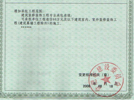 我公司新增裝飾裝修專業(yè)承包三級資質(zhì)獲得批準