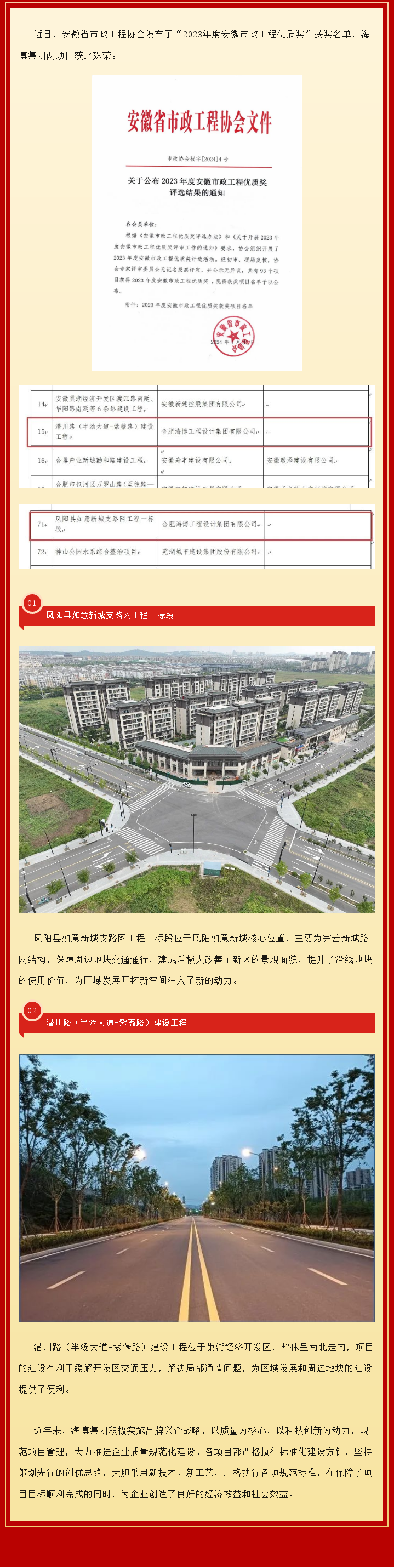 集團(tuán)兩項(xiàng)目榮獲“安徽市政工程優(yōu)質(zhì)獎(jiǎng)”